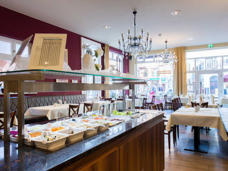 Genießen Sie den direkten Blick auf den Quedlinburger Marktplatz und das historische Rathaus und beginnen Sie den Tag mit unserem reichhaltigen Frühstück vom Buffet.